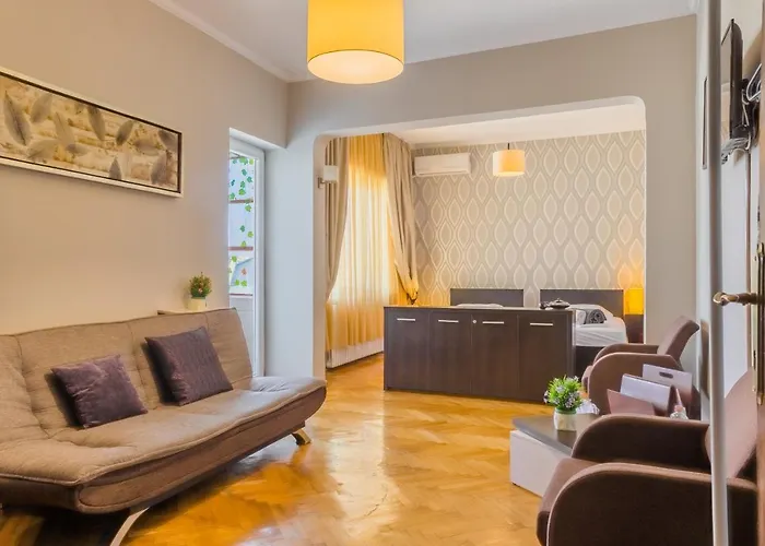 Das 45 m^2 große Apartment Palace Cismigiu Park liegt im Zentrum von Bukarest und bietet eine Terrasse mit Blick auf den Garten. Triumphbogen befindet sich in Bukarest, in einer Entfernung von 3 km von diesem Apartment.