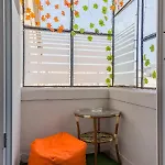 El interior incluye un patio y un balcón amueblado con ventanas insonorizadas, además de una plancha y tabla de planchar, climatizador. Además de opciones de entretenimiento como TV y TV de pantalla plana con canales vía satélite, los huéspedes también pueden disfrutar de un sofá. El apartamento dispone de 2 dormitorios con almohadas de pluma. Se proporcionan 1 baño con ducha a ras de suelo y un inodoro separado de la ducha, así como secadores de pelo y toallas.